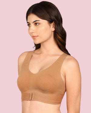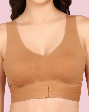 Invisi-Fit Cotton Bonded Seamless Non-Padded Invisi-Gym Bra (KB-995-FAWN)