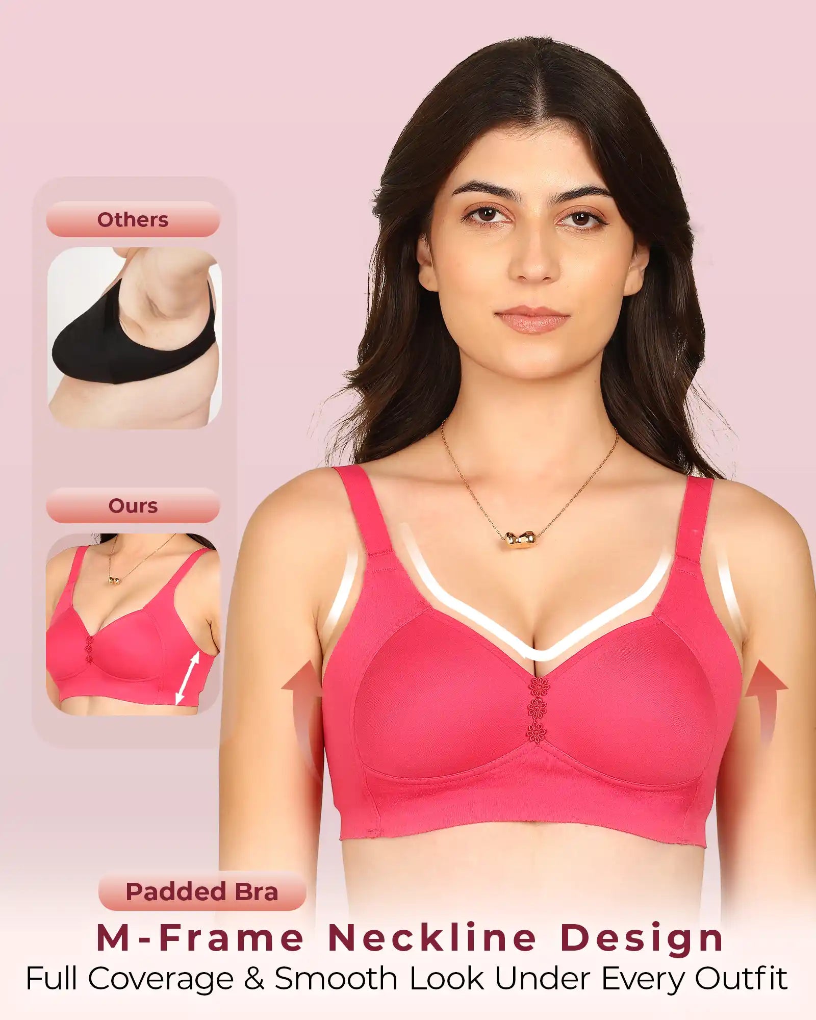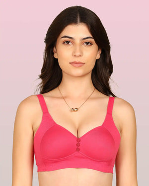 Invisi-Fit Bonded Breathable Cotton Plus Size M-Frame Minimiser Padded Bra (KB-408-DARK PINK)