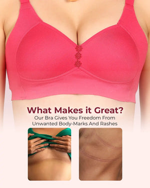 Elastic-Free Bottom Band: The bottom band is crafted without traditional elastic to prevent pinching, rashes, or body marks—just soft and irritation-free support.
