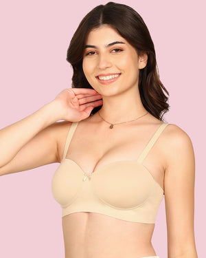 Invisi-Fit Bonded Demi-Cup Padded Cotton Spandex Bra (KB-91012-SKIN)