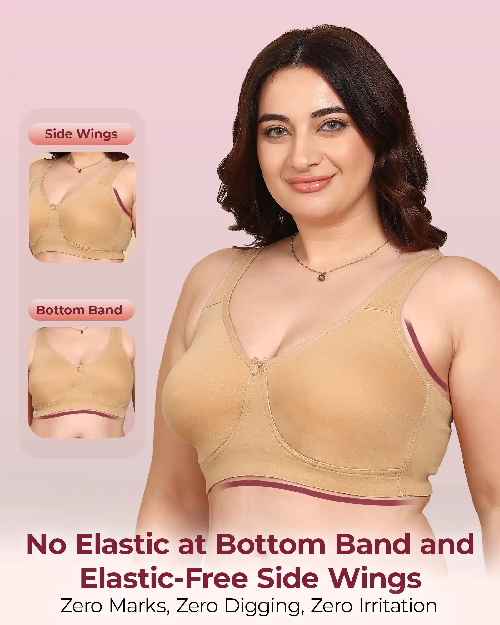 Invisi-Fit Bonded Breathable Cotton Plus Size Full Coverage Non-Padded Bra (KB-401-SKIN)