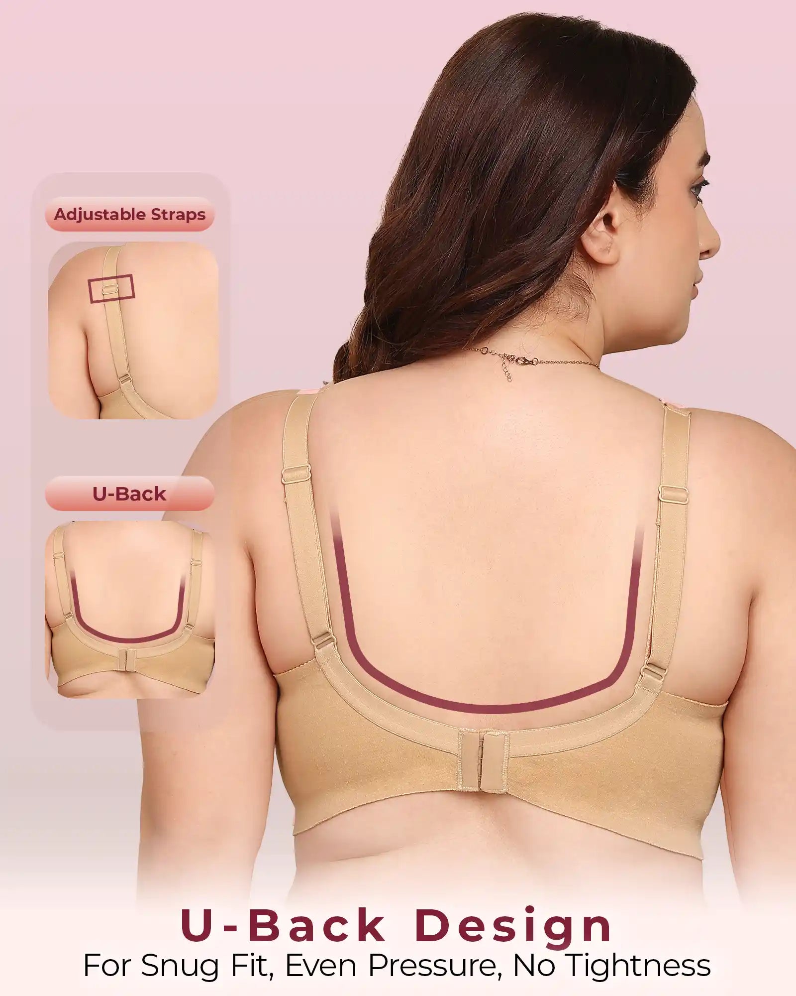 Broad Shoulder Straps: Wide straps distribute weight more evenly on the shoulders, reducing digging and discomfort – ideal for plus-size support and long wear.