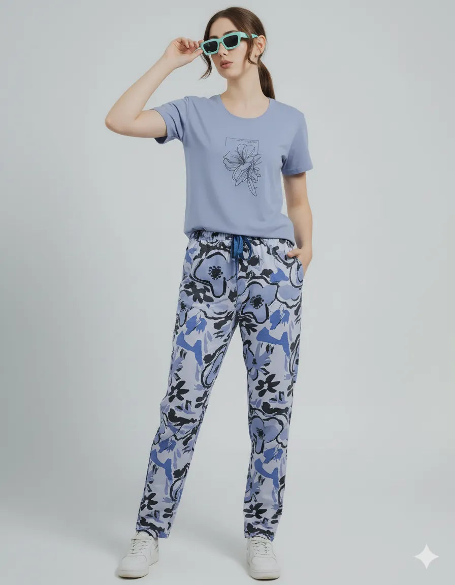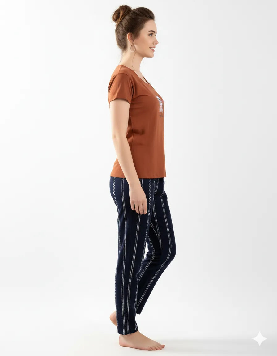 A soft, breathable 100% Rayon co-ord with a comfy tee and relaxed pyjamas. Easy to wear, easy to love—perfect for cozy nights and lazy mornings.