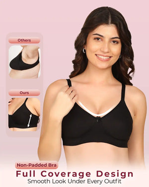 Invisi-Fit Bonded Breathable Cotton Full Coverage Non-Padded Bra (KB-352-BLACK)