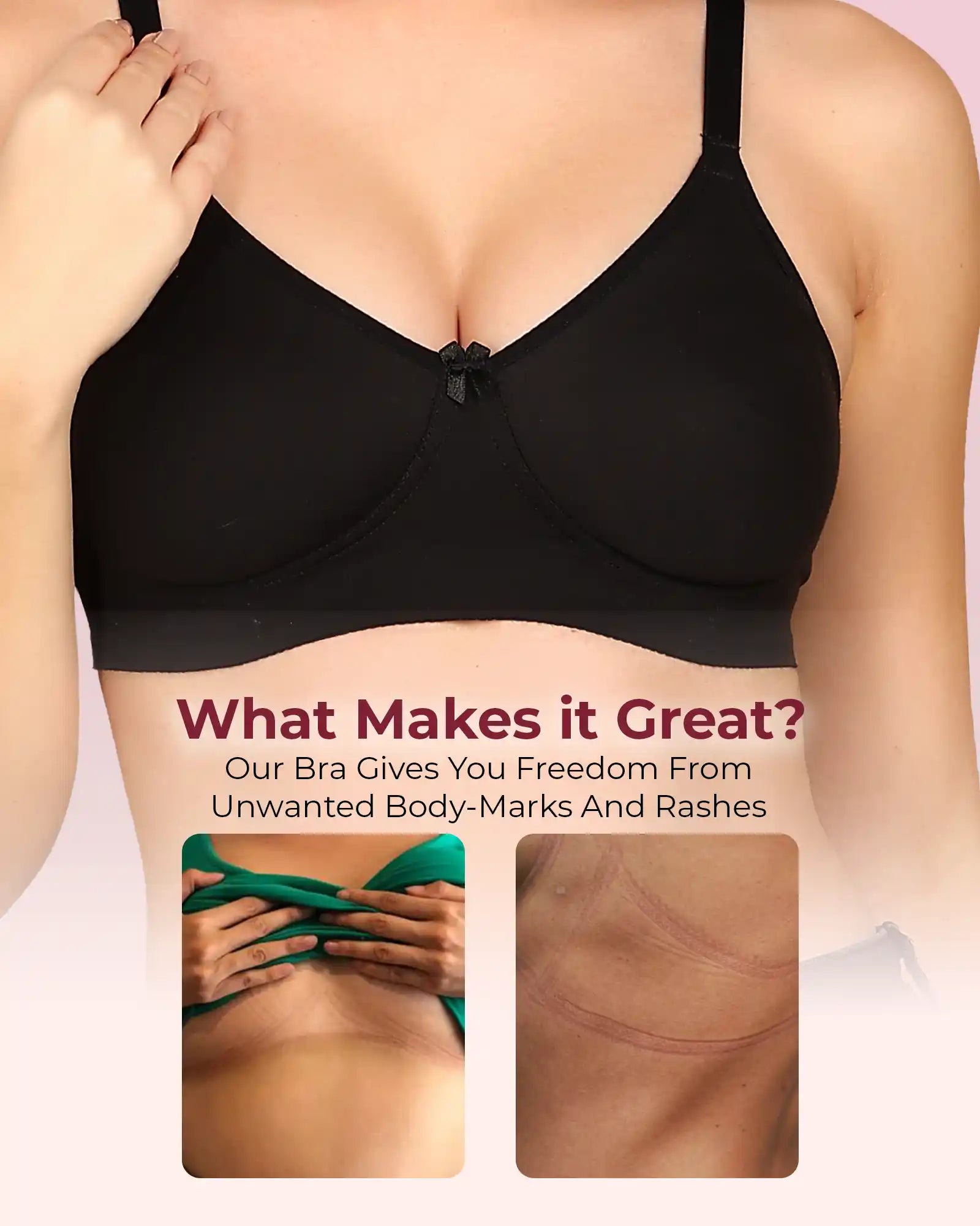 Elastic-Free Bottom Band: No elastic at the underband means no pinching, no body marks and no rashes – just a soft, gentle hold around your ribcage.