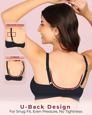 Broad Shoulder Straps: Wide straps distribute weight more evenly on the shoulders, reducing digging and discomfort – ideal for plus-size support and long wear.