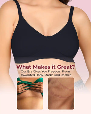 Elastic-Free Bottom Band: No elastic at the underband means no pinching, no body marks and no rashes – just a soft, gentle hold around your ribcage.