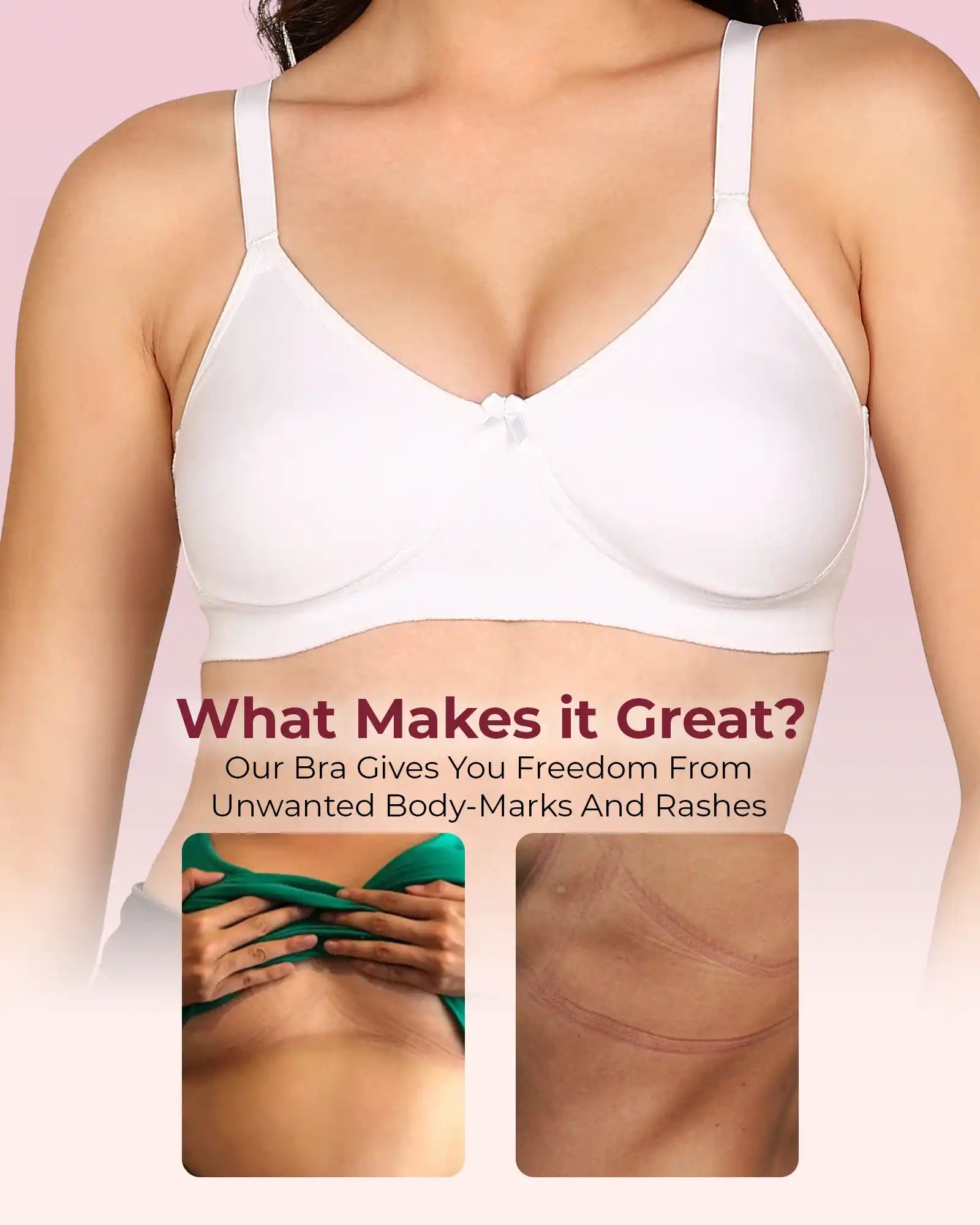 Elastic-Free Bottom Band: No elastic at the underband means no pinching, no body marks and no rashes – just a soft, gentle hold around your ribcage.