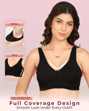 Invisi-Fit Bonded Breathable Cotton Plus Size Full Coverage Non-Padded Bra (KB-401-BLACK)