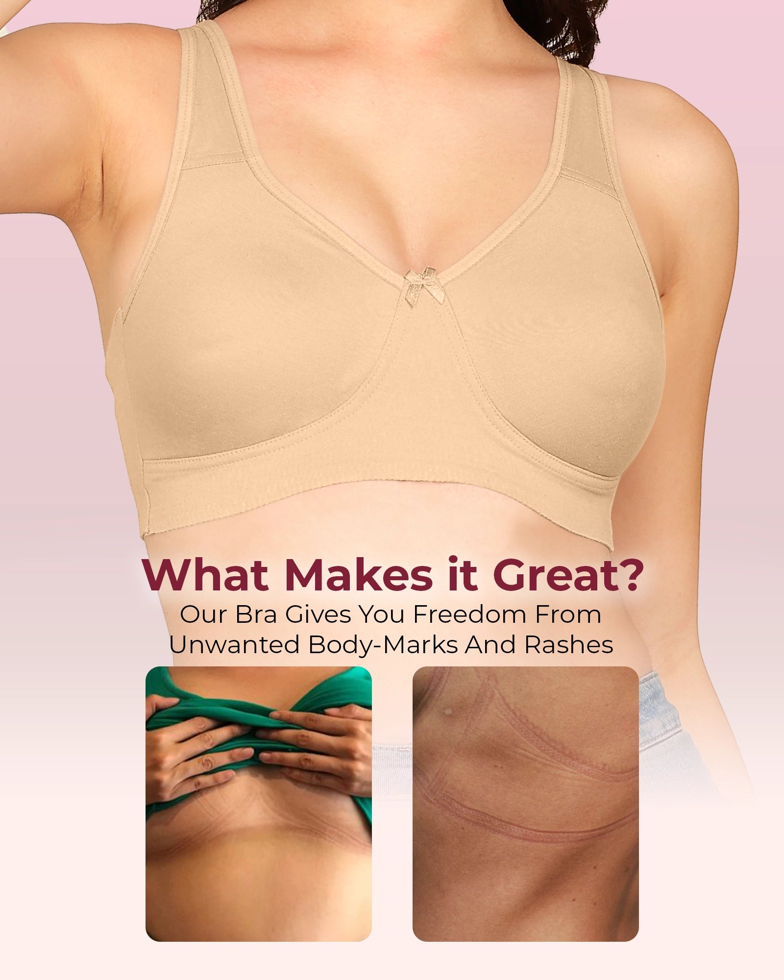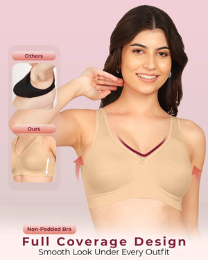 Invisi-Fit Bonded Breathable Cotton Plus Size Full Coverage Non-Padded Bra (KB-401-SKIN)