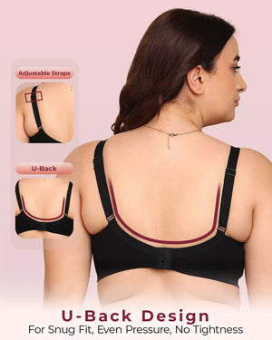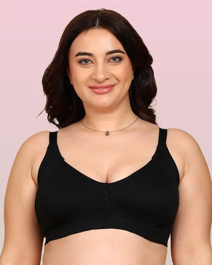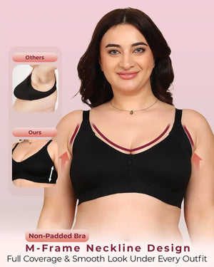 Invisi-Fit Bonded Breathable Cotton Plus Size M-Frame Minimiser Non-Padded Bra (KB-405-BLACK)