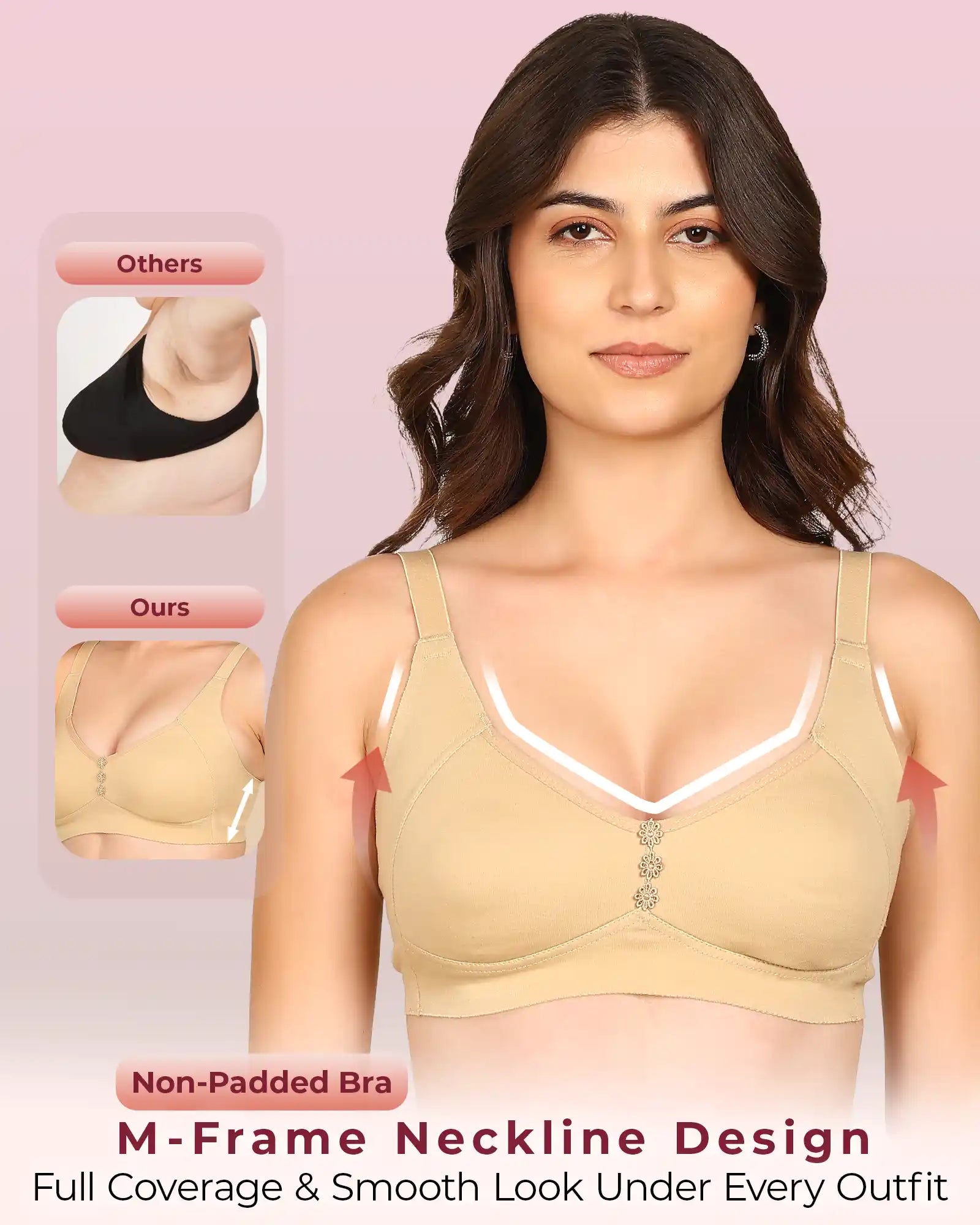 Invisi-Fit Bonded Breathable Cotton Plus Size M-Frame Minimiser Non-Padded Bra (KB-405-SKIN)