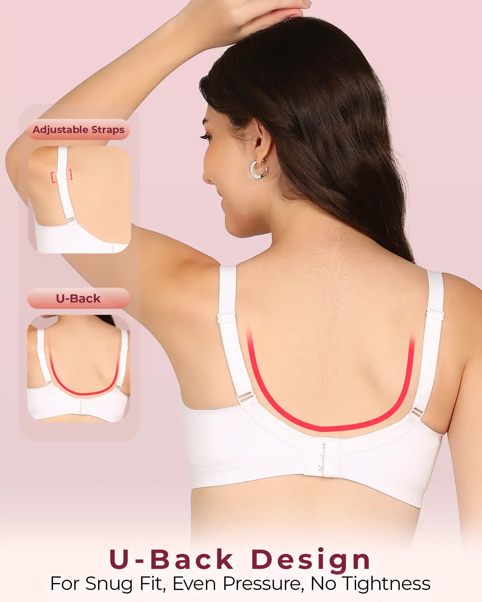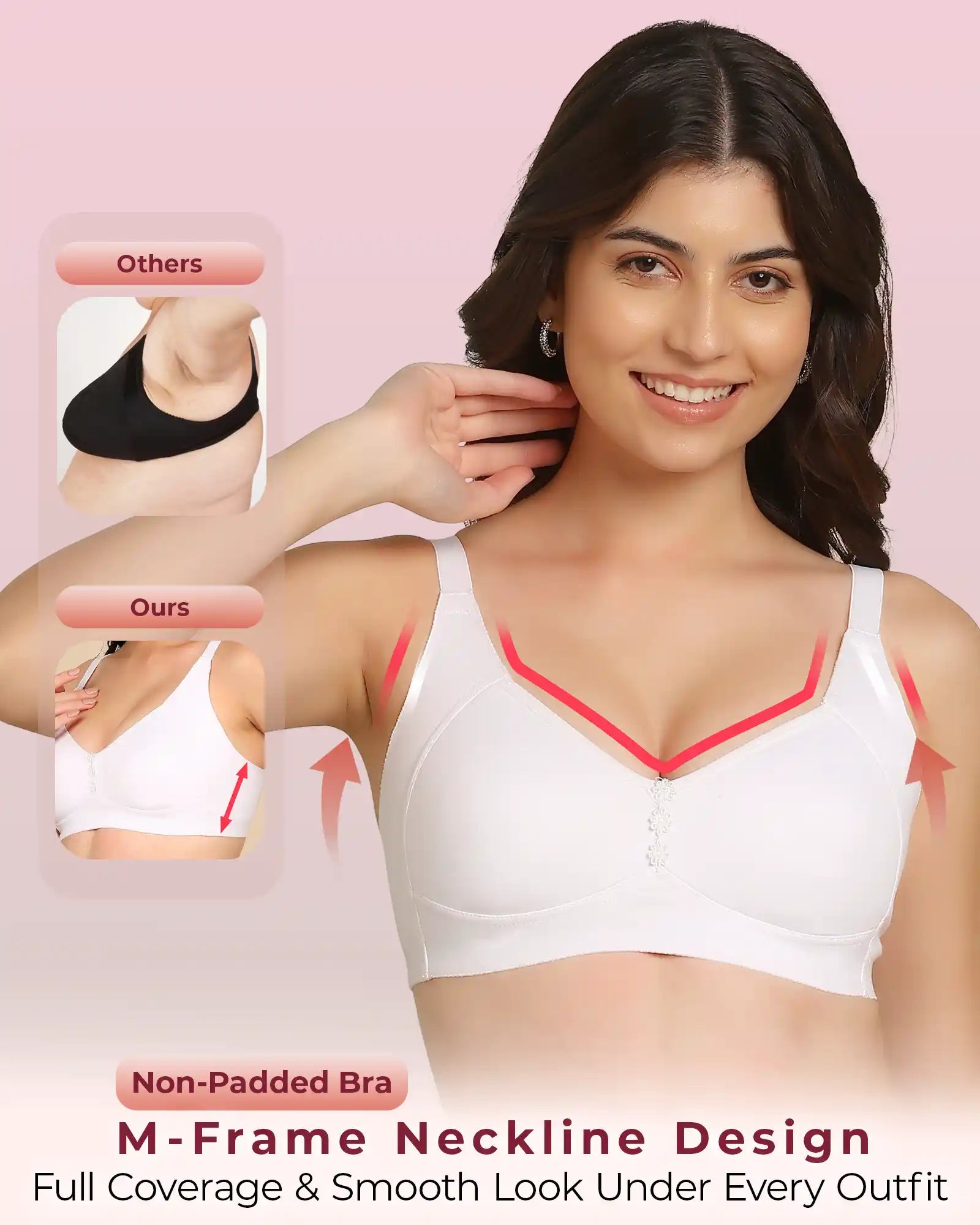 Invisi-Fit Bonded Breathable Cotton Plus Size M-Frame Minimiser Non-Padded Bra (KB-405-WHITE)