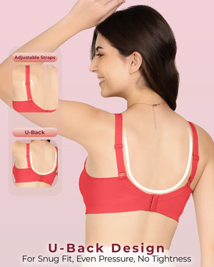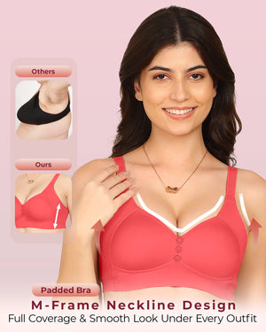 Invisi-Fit Bonded Breathable Cotton Plus Size M-Frame Minimiser Padded Bra (KB-408-CORAL)
