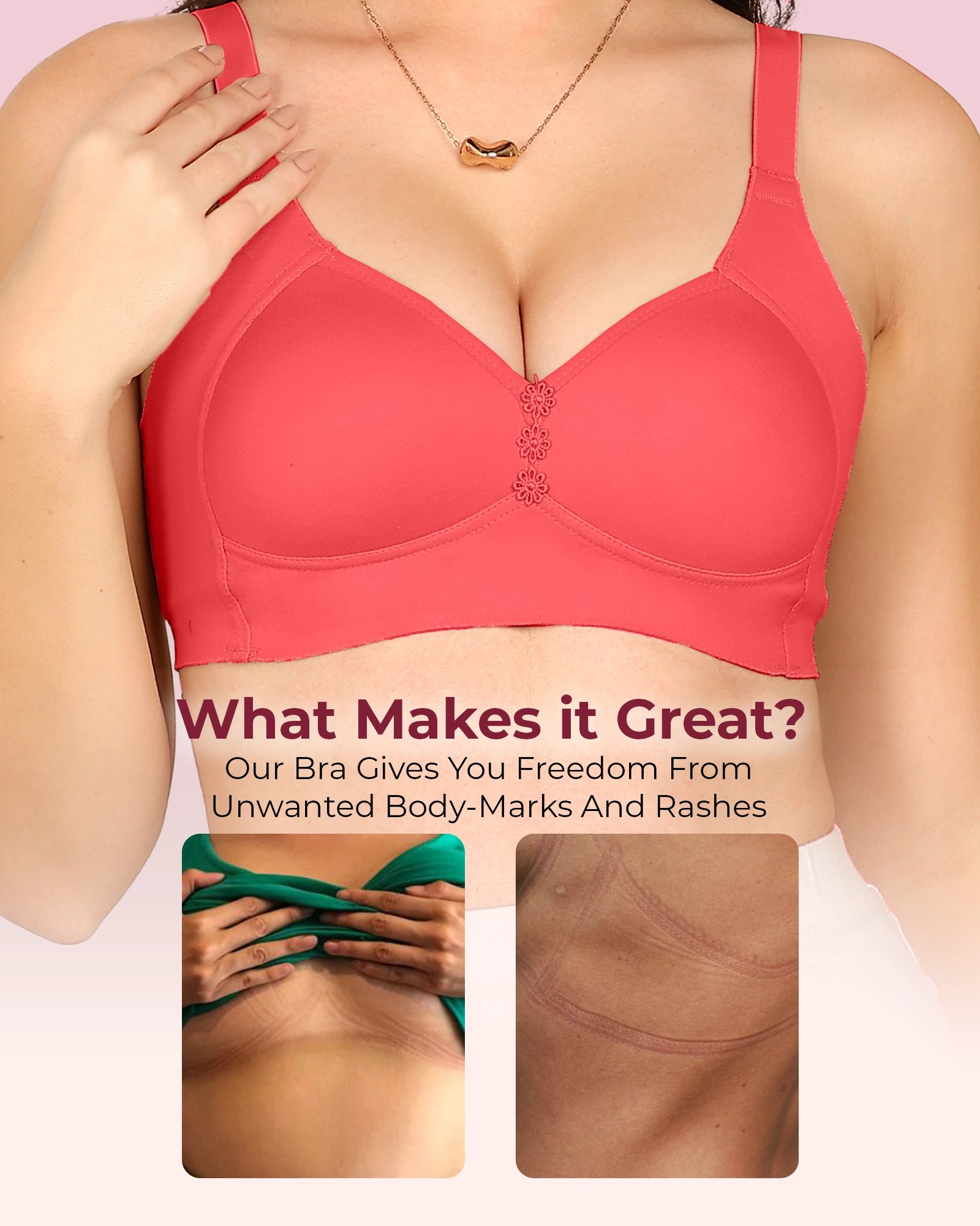 Elastic-Free Bottom Band: The bottom band is crafted without traditional elastic to prevent pinching, rashes, or body marks—just soft and irritation-free support.