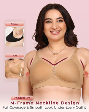 Invisi-Fit Bonded Breathable Cotton Plus Size M-Frame Minimiser Padded Bra (KB-408-SKIN)