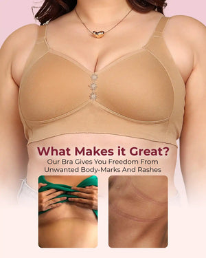 Elastic-Free Bottom Band: The bottom band is crafted without traditional elastic to prevent pinching, rashes, or body marks—just soft and irritation-free support.