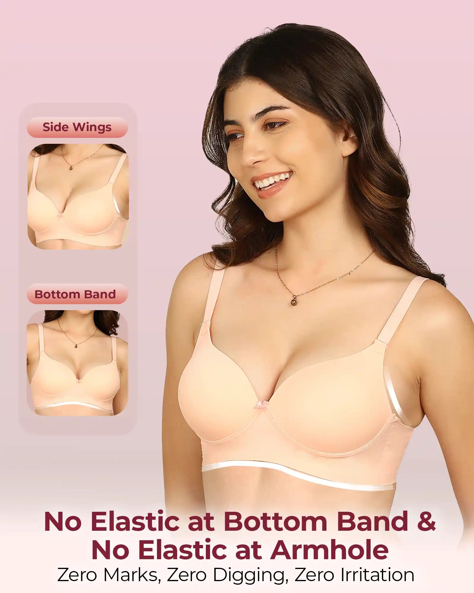Invisi-Fit Bonded Polyamide Push-Up 3/4 Coverage Maximiser Bra (Level 2 Padding (KB-5107-PEACH)