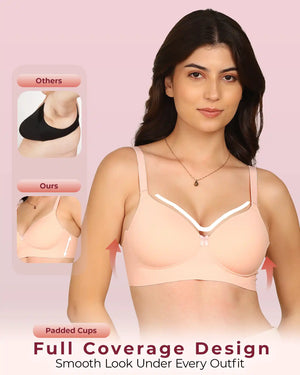 Invisi-Fit Bonded Polyamide Full Coverage Padded Bra (Level 1 Padding (KB-5991-PEACH)